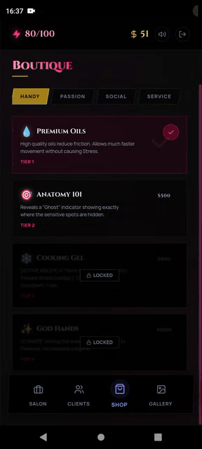 Free Member Code: By entering this code, you permanently reduce your daily operational costs (rent) by 20%, receive a 10% discount on all technique upgrades in the boutique, and earn a 10% cash bonus on every successful massage session.