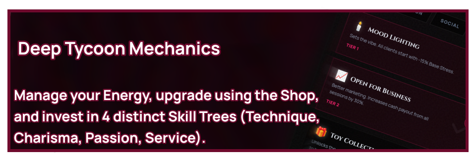 (Available on free Patreon posts) - VIP Member Code: You will benefit from a massive 50% reduction in daily upkeep, a 30% discount on all upgrades, and a 50% revenue increase from every client interaction.