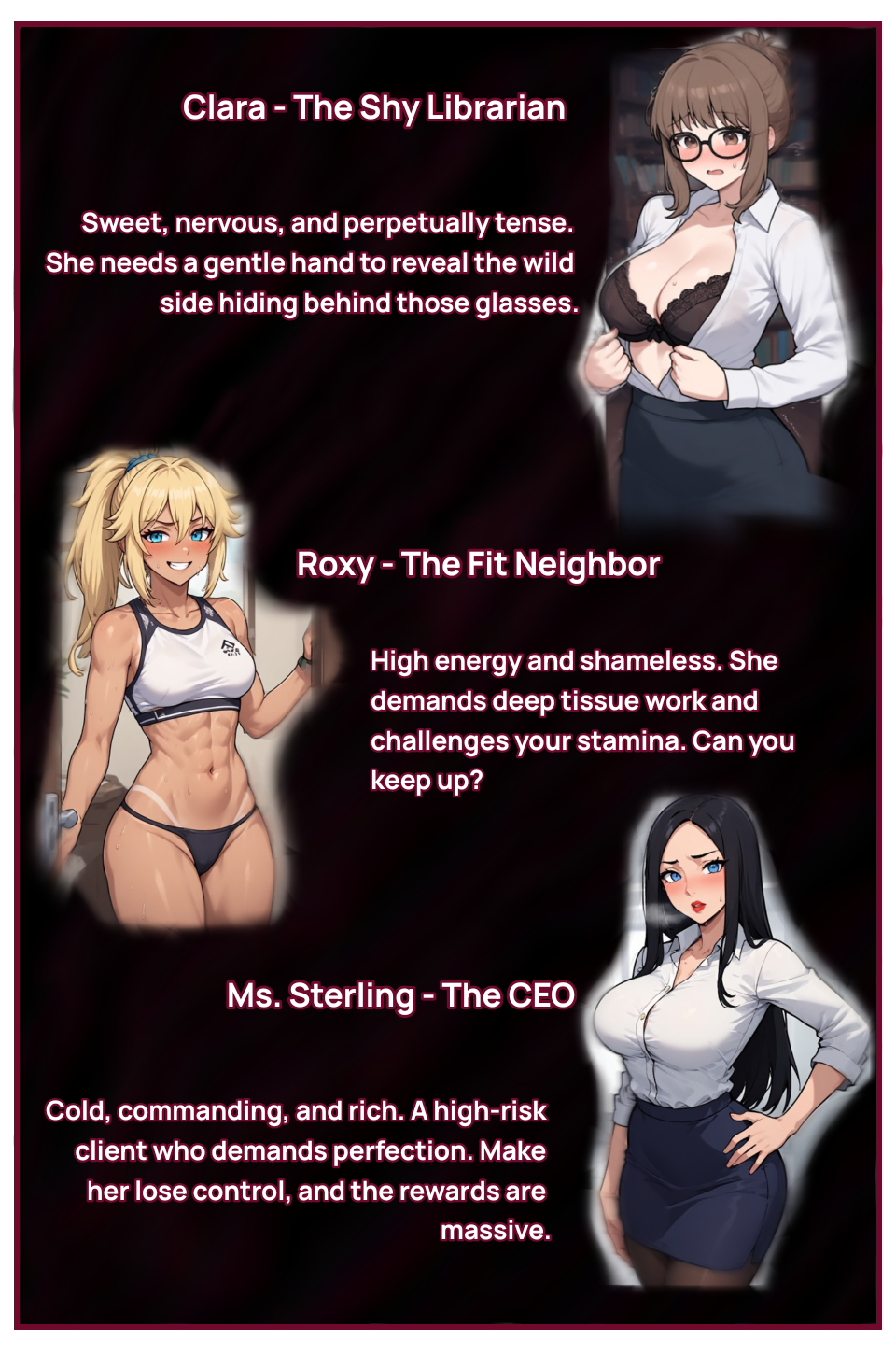 | Tags | 2D, Adult, AI Generated, Anime, Eroge, Erotic, Hentai, Management, NSFW, Tycoon |